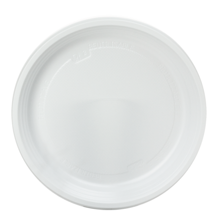 PRATO RASO REUTILIZÁVEL EM PS BRANCO 17CM