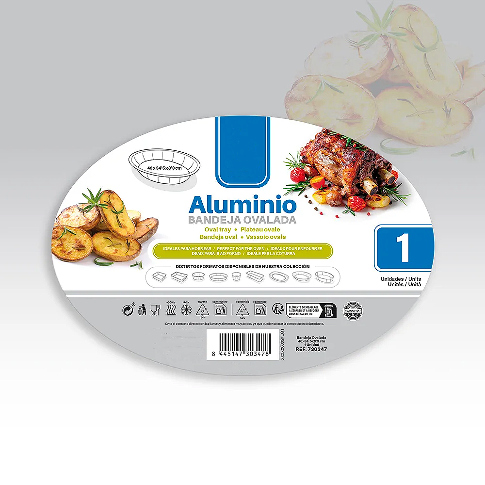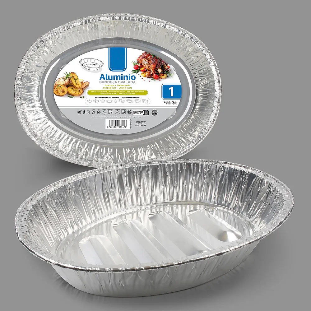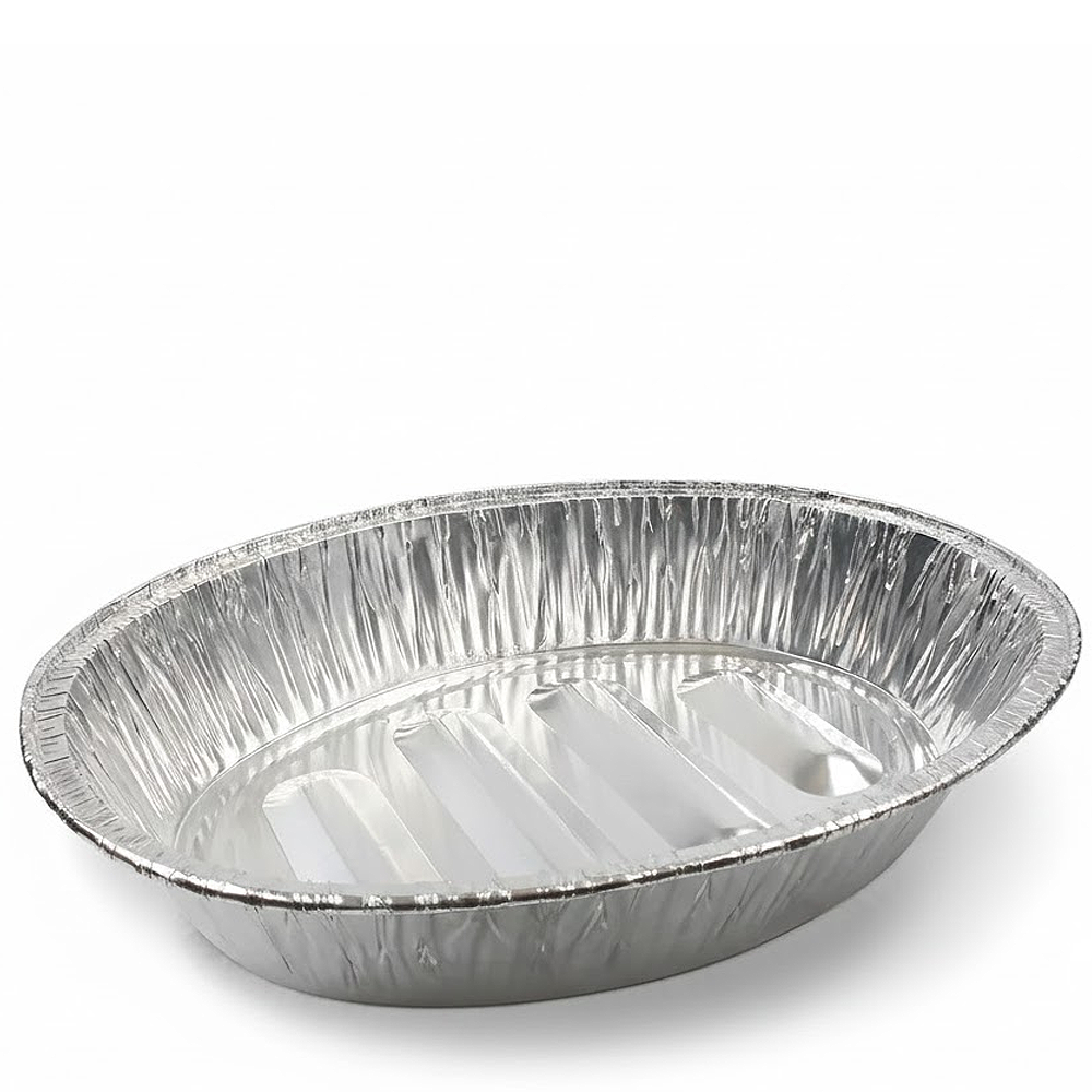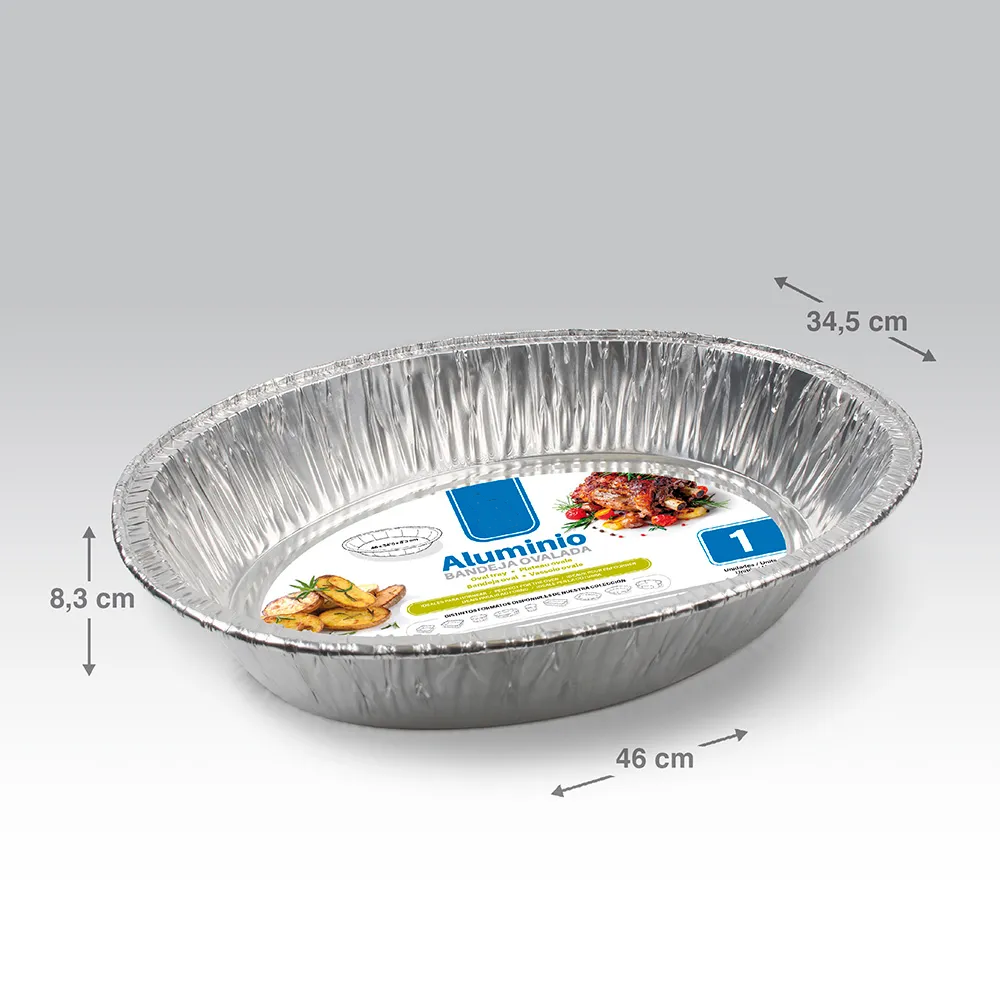 O formato oval permite utilizar a bandeja também como uma travessa de alumínio para forno, ideal para carnes, peixes, legumes, batatas assadas e receitas especiais. A profundidade de 8,3 cm evita derrames e torna esta travessa prática para transportar alimentos de forma segura. Para serviços de takeaway, a travessa mantém a temperatura dos alimentos por mais tempo, sem deformações.