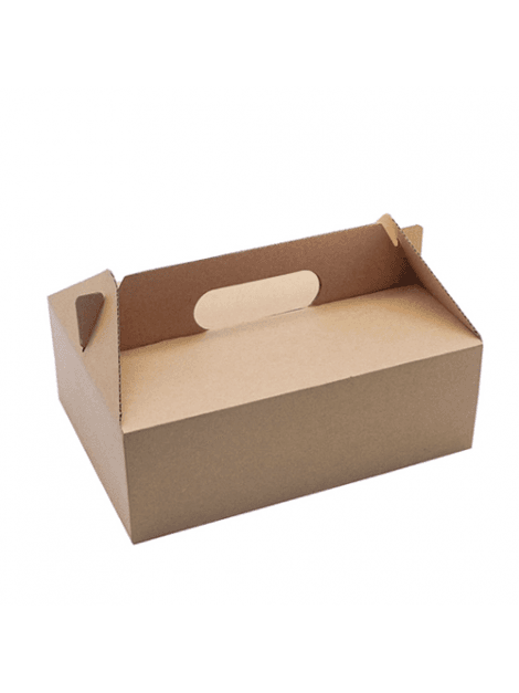 Com 24x17x12cm, este modelo adapta-se a refeições completas de take-away, caixas de pastelaria, sanduíches altas, presentes corporativos, pequenos kits de evento e cabazes compactos. A base larga evita deformações ao encher e, portanto, mantém a apresentação organizada. Coloca-se o produto, fecham-se as abas e segue-se para expedição; deste modo, a equipa trabalha com ritmo e reduz retrabalho.