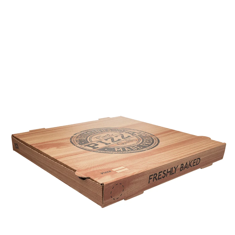 A caixa integra orifícios de ventilação estrategicamente posicionados. Desse modo, o vapor circula e a condensação diminui; consequentemente, a base permanece mais crocante e o queijo não emborracha. Deste modo, a experiência do cliente aproxima-se do que encontra no restaurante.