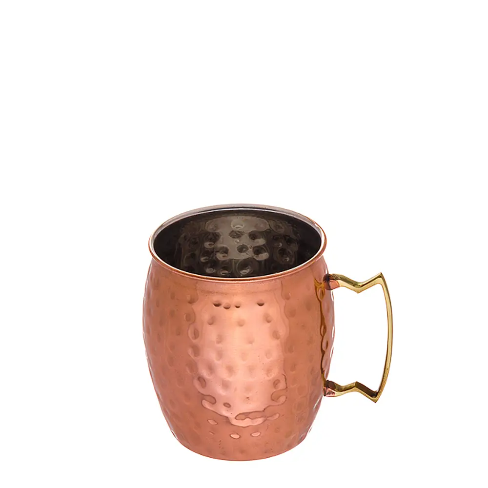 A caneca de cerveja inox cobre martelado foi especialmente concebida para servir o famoso cocktail Moscow Mule, uma bebida clássica preparada com vodka, cerveja de gengibre, sumo de lima e gelo picado. O acabamento em cobre não é apenas estético: ajuda a manter a bebida fria por mais tempo, proporcionando uma experiência superior ao consumidor.