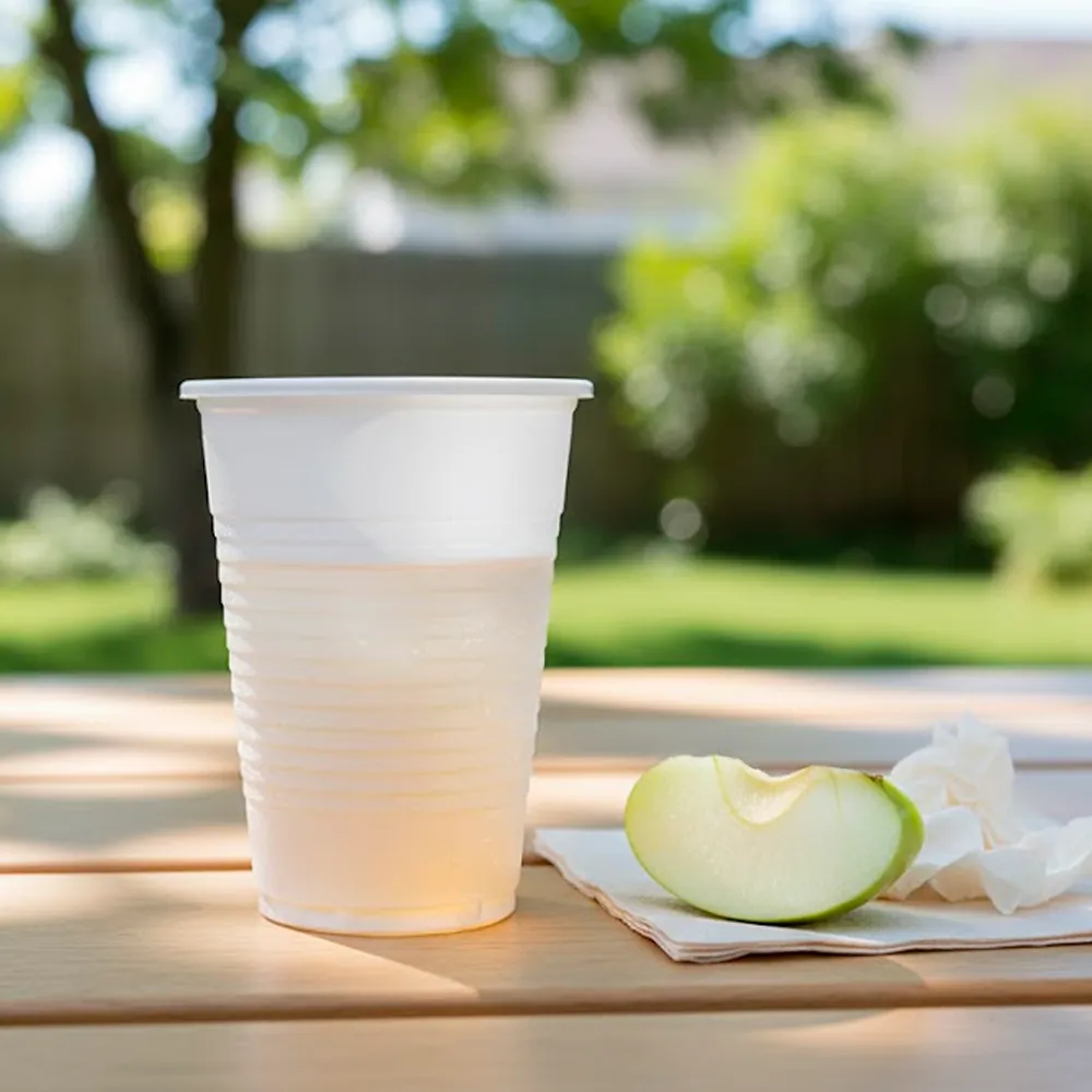 O copo água ou sumo PP branco 20cl é produzido em polipropileno apto para uso alimentar, garantindo segurança total no contacto com bebidas. Trata-se de um material leve, resistente e durável, adequado para utilizações repetidas em contextos profissionais.