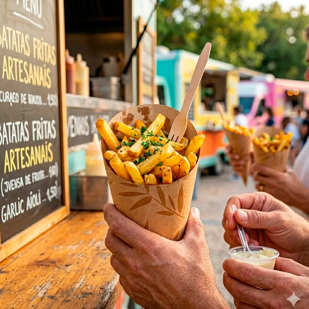 Este copo em cartolina castanha para batata frita 480ml é ideal para: