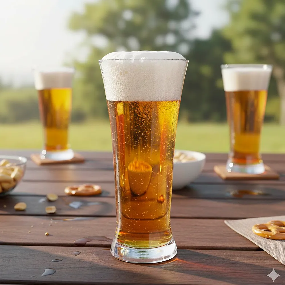 O formato ergonómico e transparente deste copo contribui para uma experiência mais imersiva ao consumir cerveja. Ao realçar a tonalidade e a espuma, desperta o interesse visual e aumenta o prazer da degustação. Dessa forma, tanto em eventos profissionais como em casa, é possível criar um ambiente mais acolhedor e convidativo. Além disso, a borda suave promove um contacto confortável com os lábios, intensificando a sensação de qualidade.