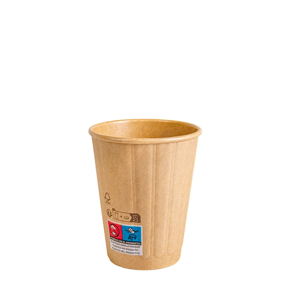 Copo para bebidas quentes em cartolina natural, capacidade 240 ml, parede dupla e gramagem 288+ 210 g/m². Estes copos foram desenhados para manter a temperatura da bebida por mais tempo e oferecer uma pega confortável sem necessidade de luvas. Ideais para café, chá e bebidas quentes para take-away, uso em cafeterias, eventos e escritórios.