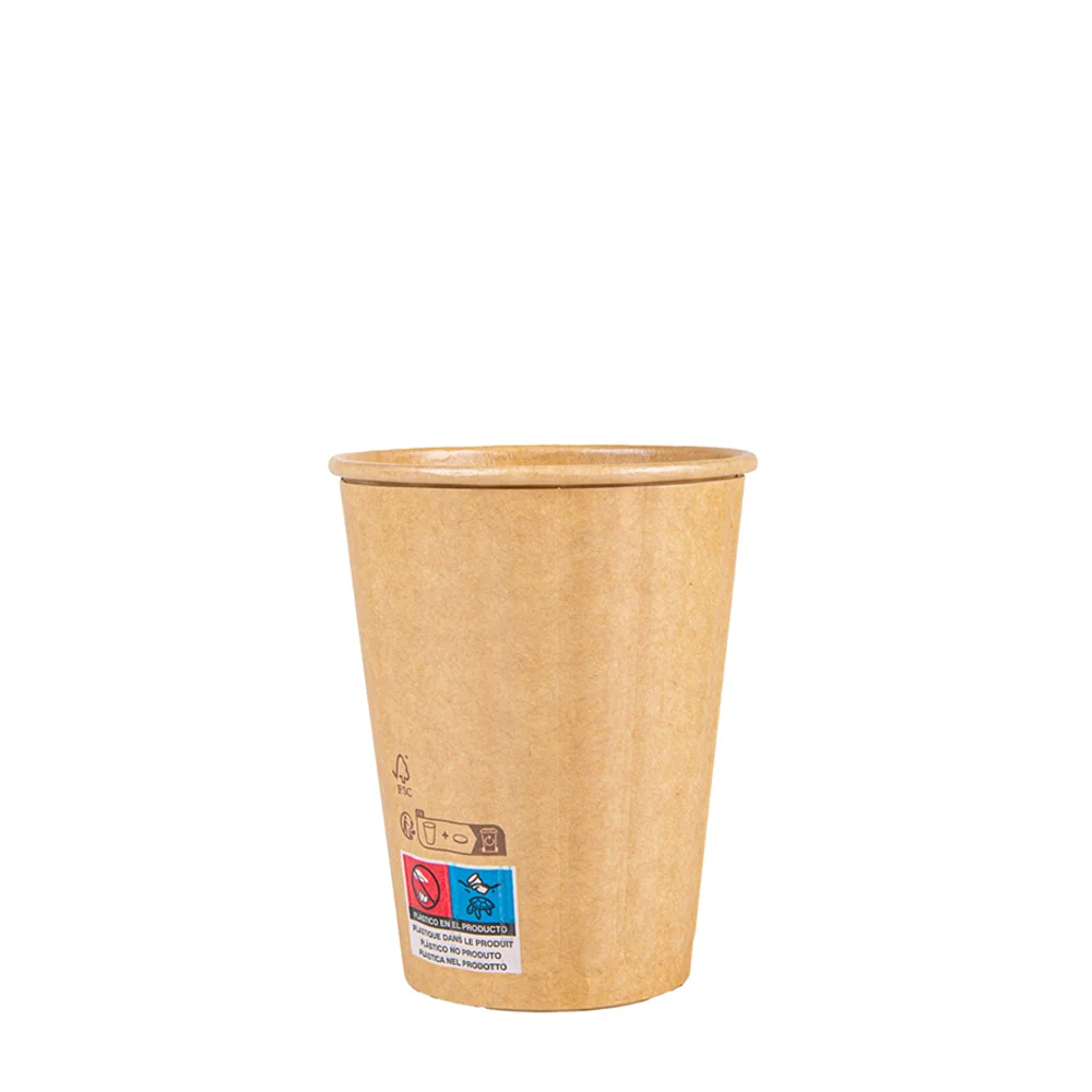 Fabricado em cartolina de alta gramagem, revestido com barreira dispersora à base de água (menos de 0,75% de conteúdo plástico na matéria-prima), este copo para bebidas quentes é recilcável e industrial/doméstico compostável. Certificações: FSC Mix Credit, OK compost HOME e conformidade com EN 13432. Cumprimento dos regulamentos REACH e das Boas Práticas de Fabricação (Reg. CE nº 2023/2006).