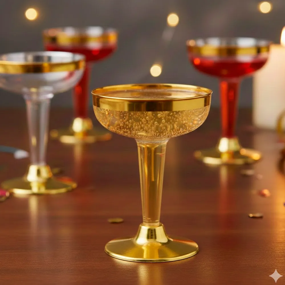 Copo em PS Transparente com Pé Dourado 10cl (100ml): Um Toque de Elegância e Resistência