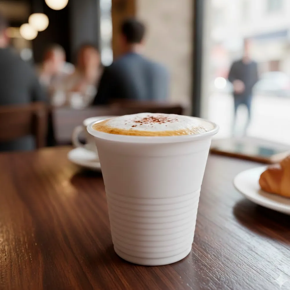 Em suma, este copo combina praticidade, estilo e responsabilidade ambiental num único produto. O design clássico confere-lhe uma aparência familiar, enquanto a ergonomia e a leveza promovem uma utilização cómoda e segura. Assim, cada momento de pausa para café ganha um toque de sustentabilidade, sem abdicar do conforto ou do sabor. Veja mais copos descartáveis em Polipropileno PP.