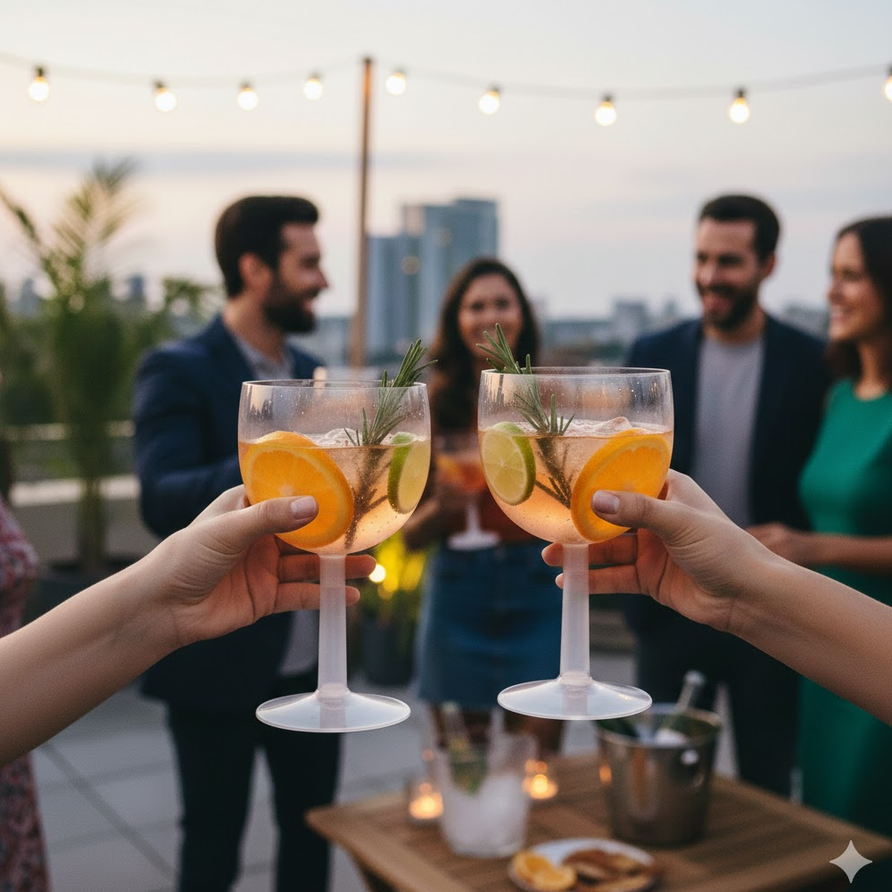 Desenvolvido a pensar nos apreciadores de gin, este copo plástico apresenta um formato ergonómico que favorece a mistura de tónica, gelo e ingredientes aromáticos. Consequentemente, a bebida mantém o equilíbrio perfeito entre sabor e frescura. No entanto, não se limita ao gin: também serve outras bebidas, como cocktails tropicais, águas aromatizadas ou sumos naturais, o que comprova a sua versatilidade.