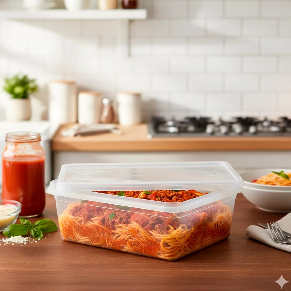 O PP é próprio para contacto com alimentos e suporta a rotina de cozinhas profissionais, cantinas e take-away. Contudo, como boa prática, evita-se a exposição a fontes de calor direto. Em alternativa, utiliza-se a embalagem para armazenamento, transporte e serviço rápido em linha fria ou quente de consumo imediato.