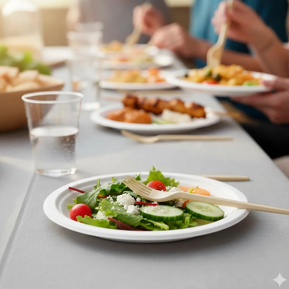 O produto é apto para contacto alimentar, garantindo confiança em refeições frias e quentes dentro dos limites do material. Por conseguinte, serve pratos do dia, massas e saladas com fiabilidade, tanto ao balcão como em self-service.