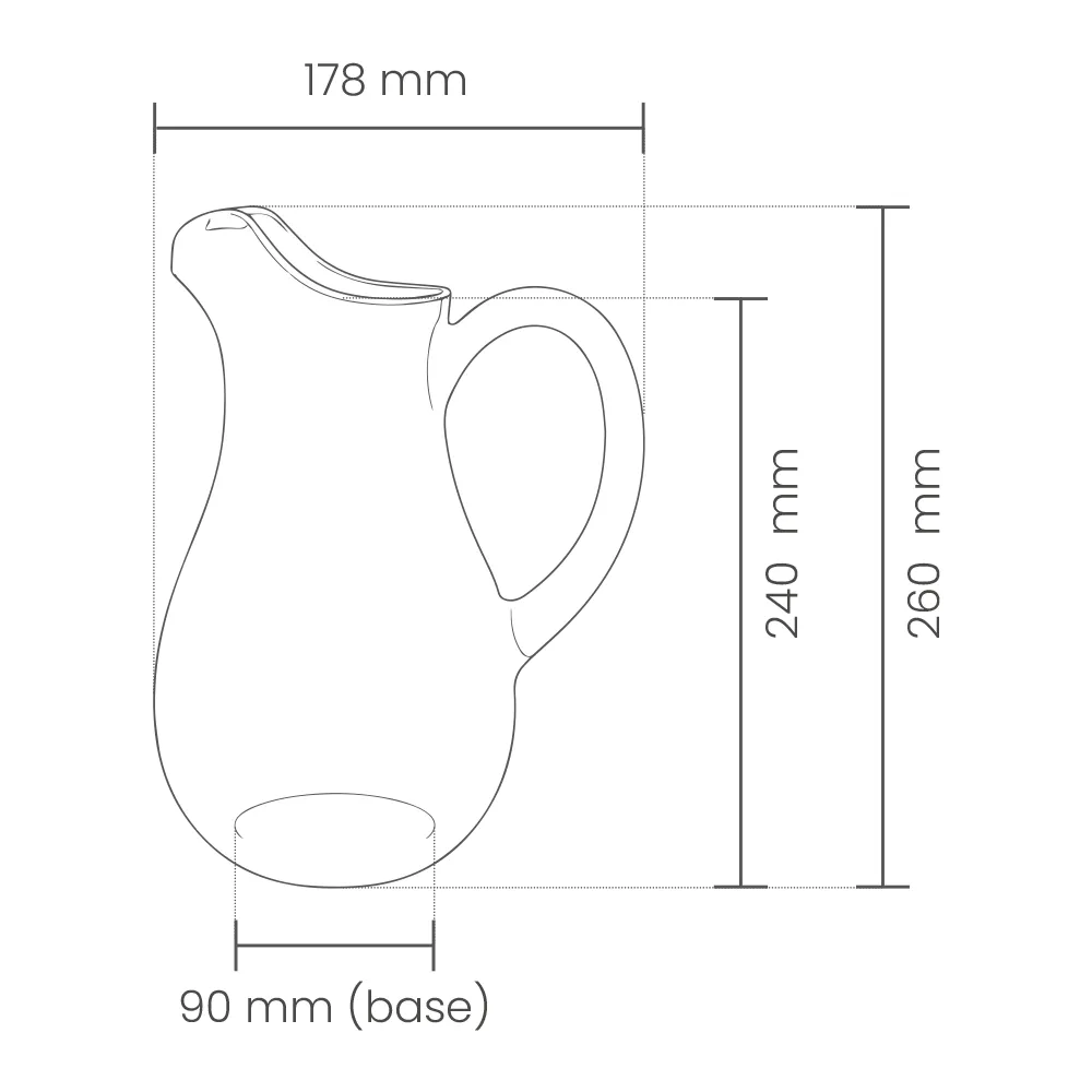 O Jarro em PC 2,2L é uma solução sustentável para negócios que pretendem reduzir o uso de vidro descartável ou frágeis alternativas de menor durabilidade. Sendo reutilizável e extremamente resistente, contribui para a diminuição de resíduos e para uma gestão mais eficiente de stocks.