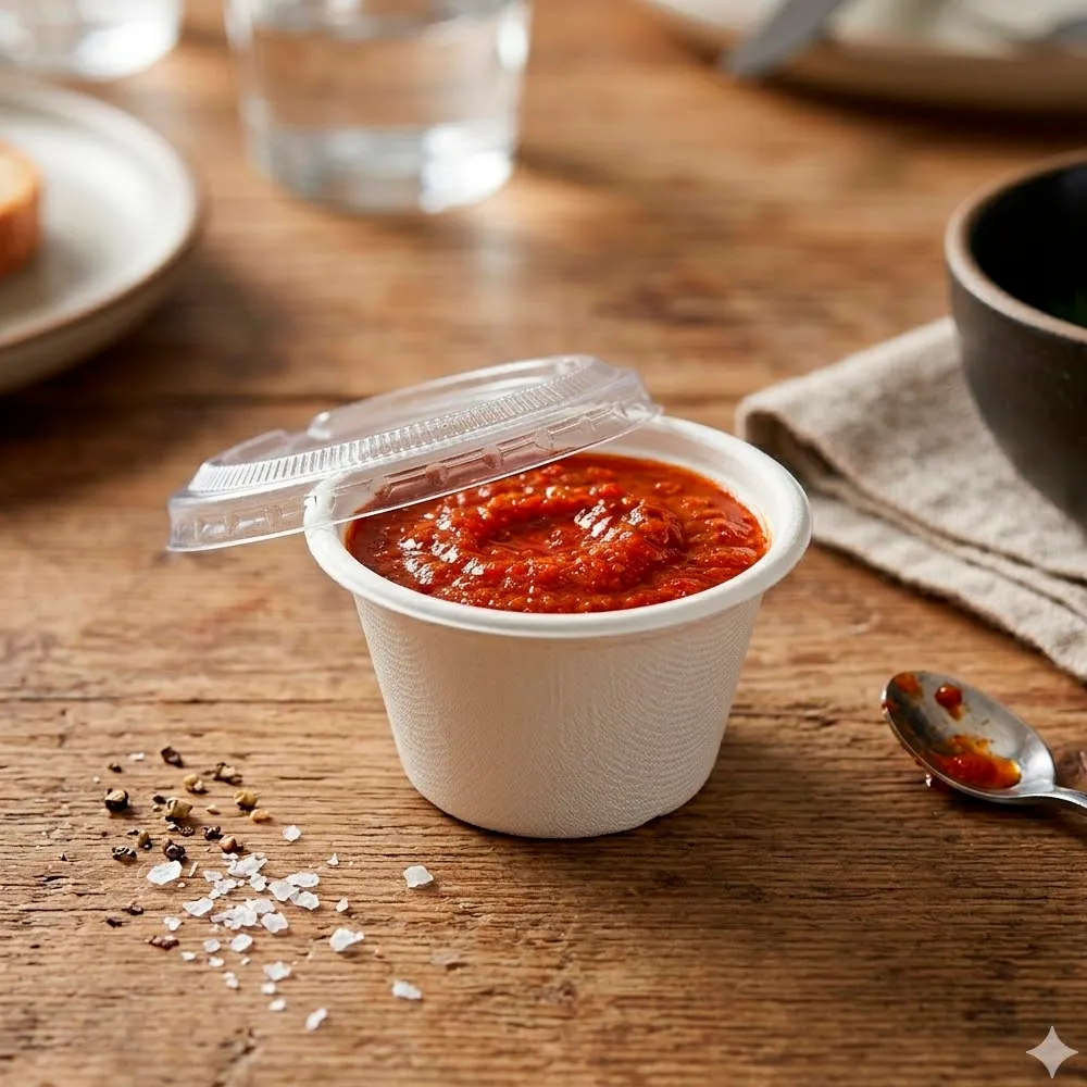 O mini pote bagaço branco 6cl é ideal para apresentar molhos, aperitivos, degustações ou pequenas porções de forma prática e elegante em restaurantes, catering, food trucks e serviços de take-away. Fabricado em bagaço branco, um material natural, combina leveza, resistência e acabamento estético de alta qualidade, destacando a apresentação dos alimentos.