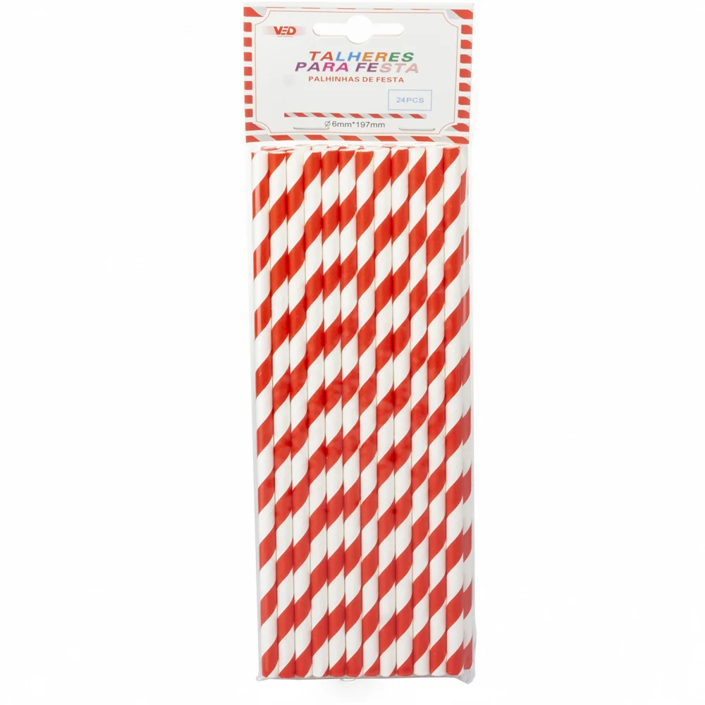 A palhinha reta de papel listrada vermelho e branco é uma solução elegante, funcional e ecológica para festas, eventos, restauração e uso doméstico. Produzida em papel próprio para contacto alimentar, esta palhinha combina estilo festivo com responsabilidade ambiental, oferecendo uma alternativa sustentável às palhinhas de plástico descartáveis. Com 6 mm de diâmetro e 19,7 cm de comprimento, adapta-se perfeitamente a cocktails, refrigerantes, sumos, bebidas festivas e decorações temáticas, mantendo sempre um visual apelativo graças ao seu acabamento prateado com bolinhas brancas.