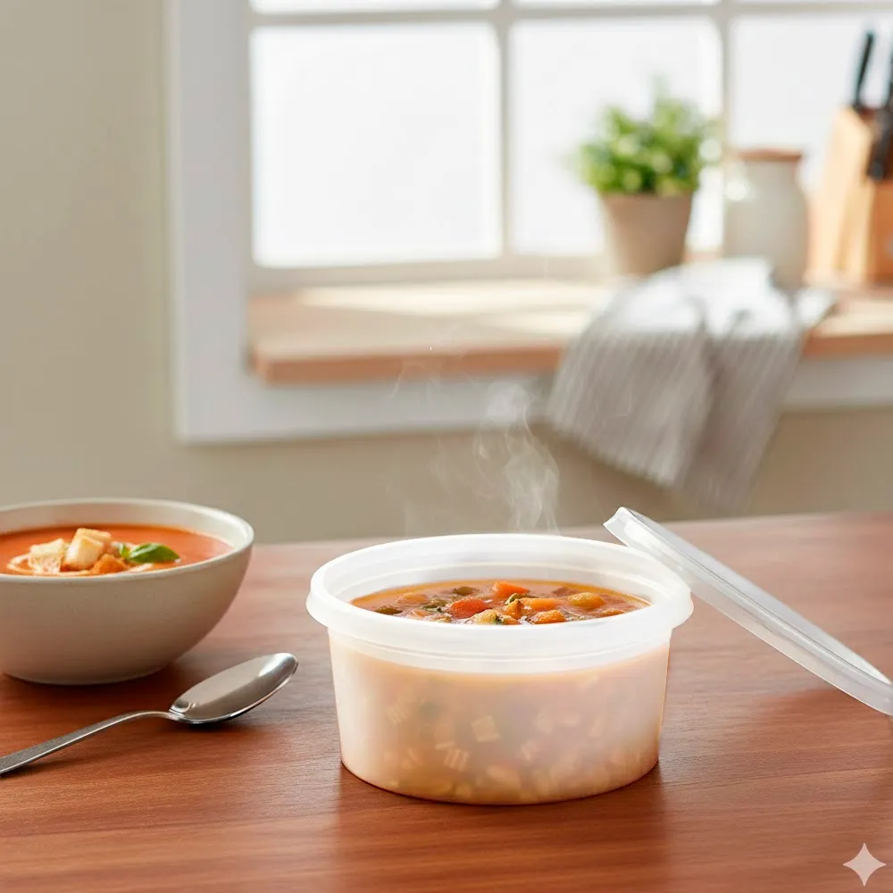 - Durabilidade Térmica: O material do pote em PP ajuda a manter a temperatura dos alimentos, garantindo que as sopas sejam servidas quentes e saborosas.