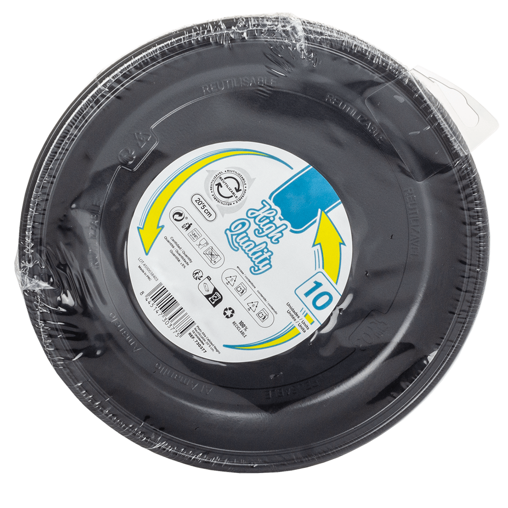 O design preto e neutro adapta-se facilmente a vários estilos de apresentação. Por esse motivo, o prato serve tanto em eventos e festas como em serviços de restauração, catering e takeaway. A leveza facilita o transporte e o empilhamento, enquanto o formato raso melhora a disposição dos alimentos. Assim, o prato raso reutilizável em PS preto de 20,5cm oferece uma solução funcional, económica e sustentável, adequada para profissionais e consumidores que valorizam praticidade, estética e responsabilidade ambiental.