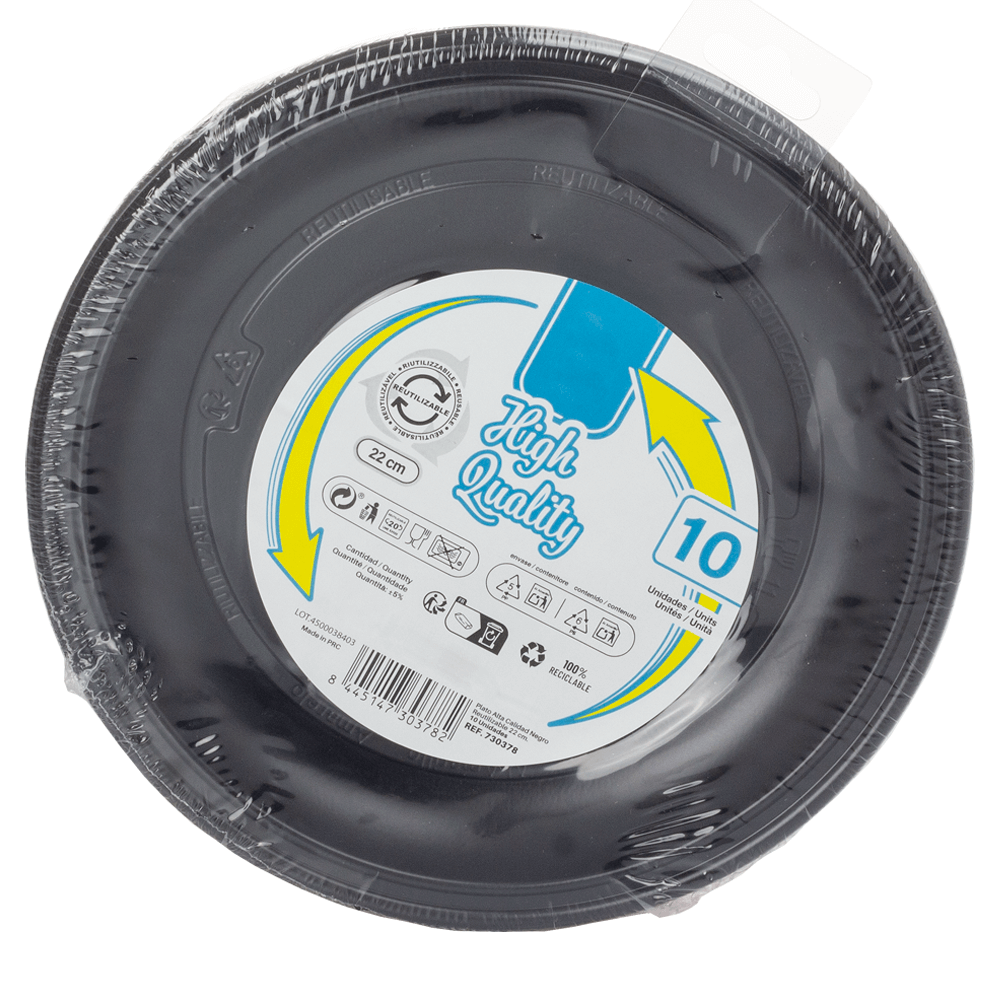 O prato raso reutilizável em PS preto de 22cm oferece uma combinação equilibrada entre resistência, leveza e elegância. O poliestireno de alta qualidade assegura uma estrutura firme que suporta várias utilizações sem perder a forma. Além disso, o acabamento liso e brilhante confere um aspeto limpo e moderno, ideal para qualquer tipo de serviço. Com 22 cm de diâmetro, o prato permite servir refeições completas, saladas ou sobremesas de forma prática e organizada.