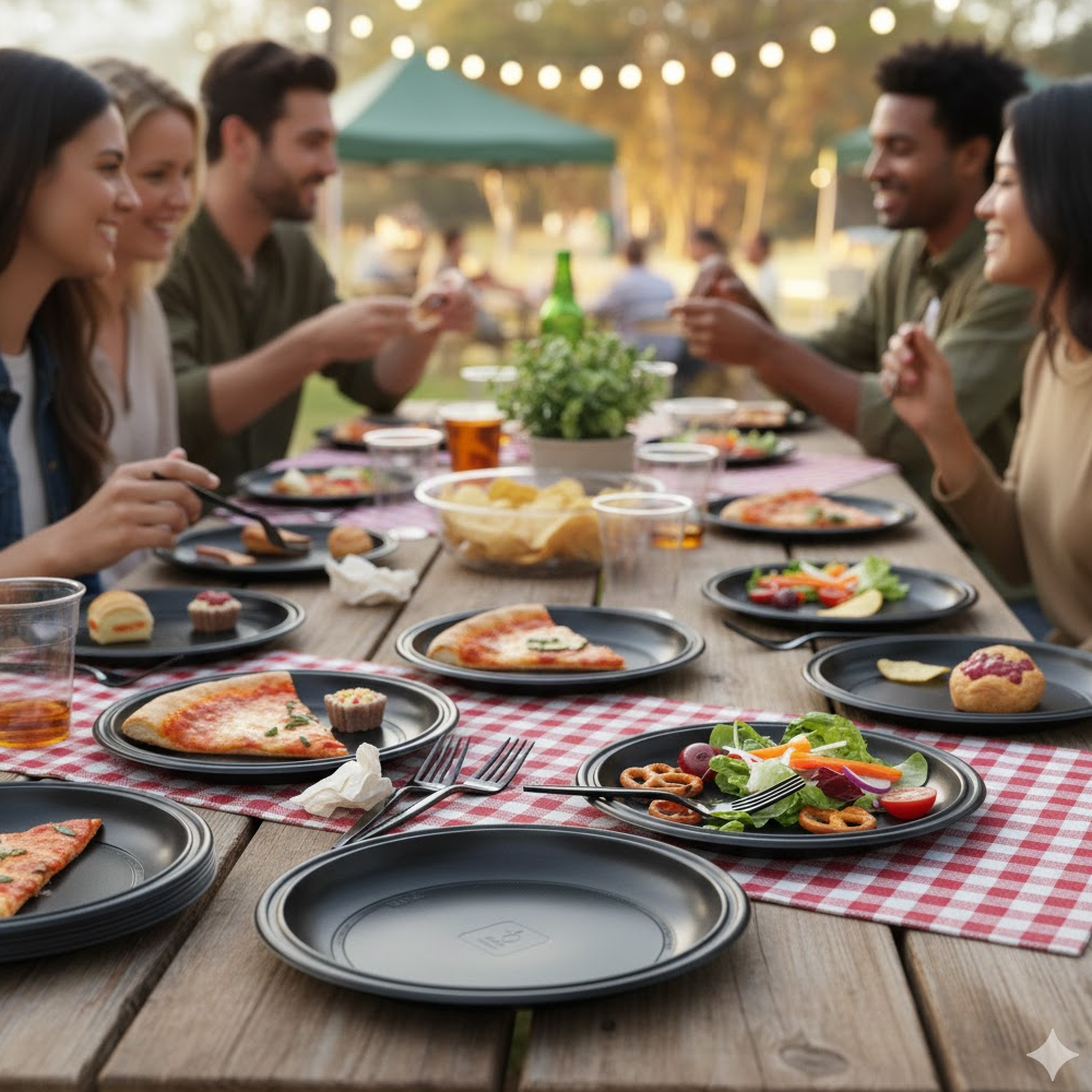 O design preto e neutro adapta-se facilmente a vários estilos de apresentação. Por esse motivo, o prato serve tanto em eventos e festas como em serviços de restauração, catering e takeaway. A leveza facilita o transporte e o empilhamento, enquanto o formato raso melhora a disposição dos alimentos. Assim, o prato raso reutilizável em PS preto de 22cm oferece uma solução funcional, económica e sustentável, adequada para profissionais e consumidores que valorizam praticidade, estética e responsabilidade ambiental.