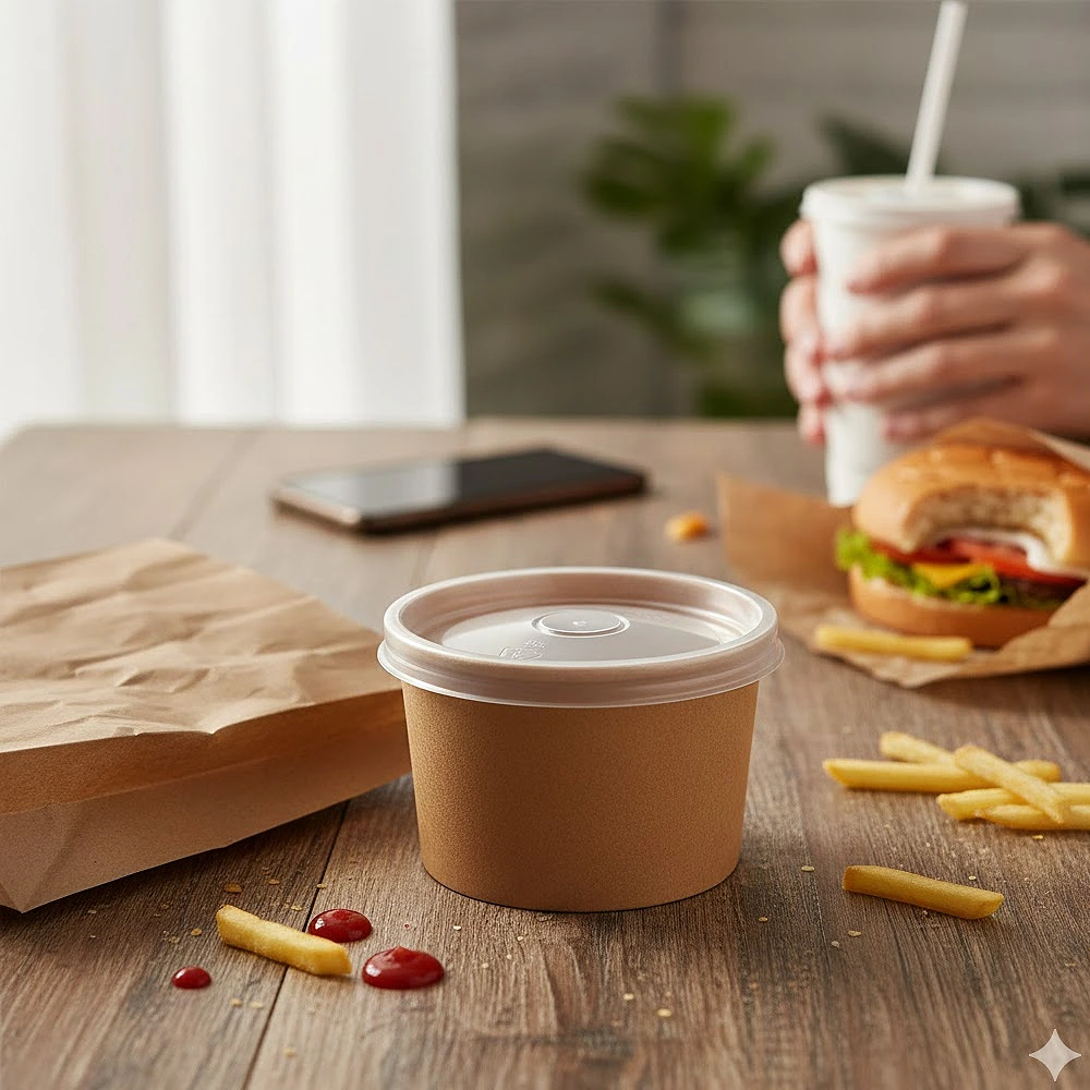 Recipiente Kraft 24cl (240ml) com Tampa PP – Eficiência, Sustentabilidade e Versatilidade