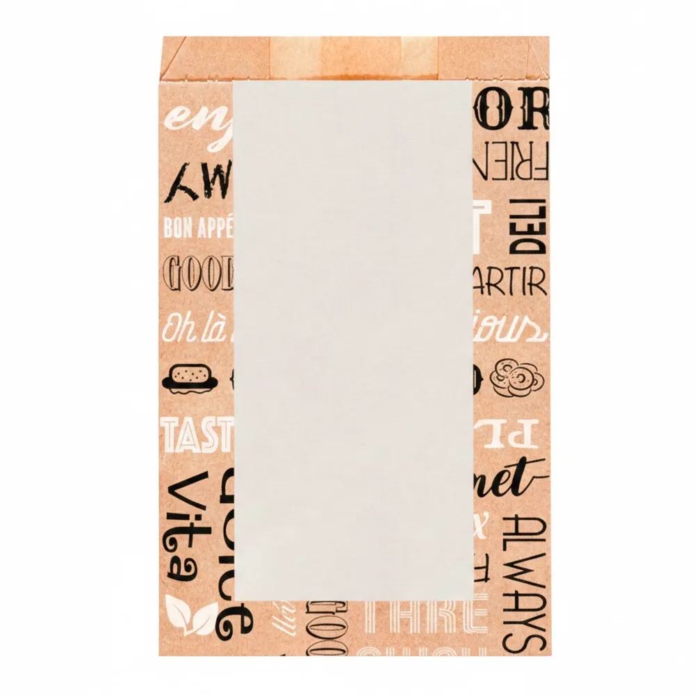 Saco pergaminho anti-gordura 12+7x18cm com janela PFAS Free para padaria e take away sustentável