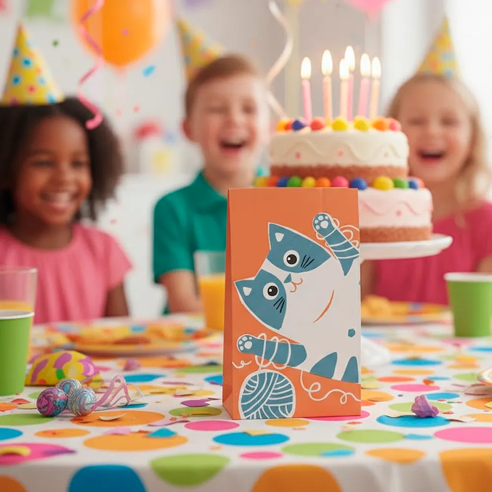 Os sacos SOS sem asas CAT são a solução ideal para embalamento rápido, higiénico e sustentável, especialmente pensada para snacks, lanches, pequenos produtos e serviços de comida para levar. Estes sacos SOS sem asas CAT são fabricados em celulose branca de 70 g/m² e destacam-se pelo design decorado com um simpático desenho de gato, tornando-os particularmente atrativos para um público infantil, escolas, pastelarias, festas e eventos familiares.