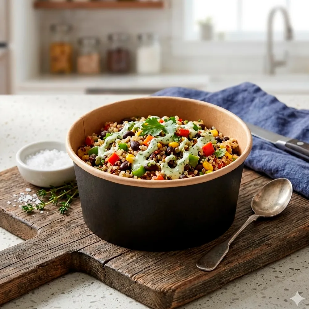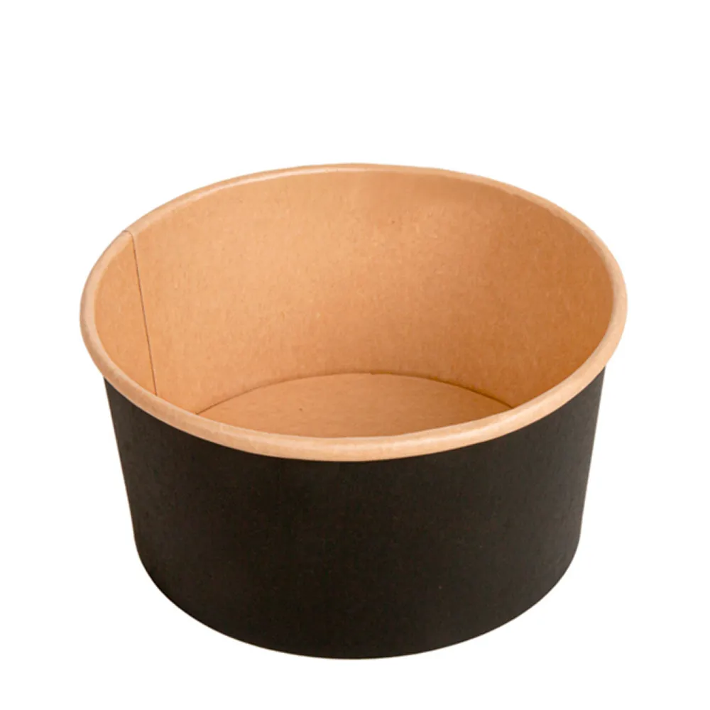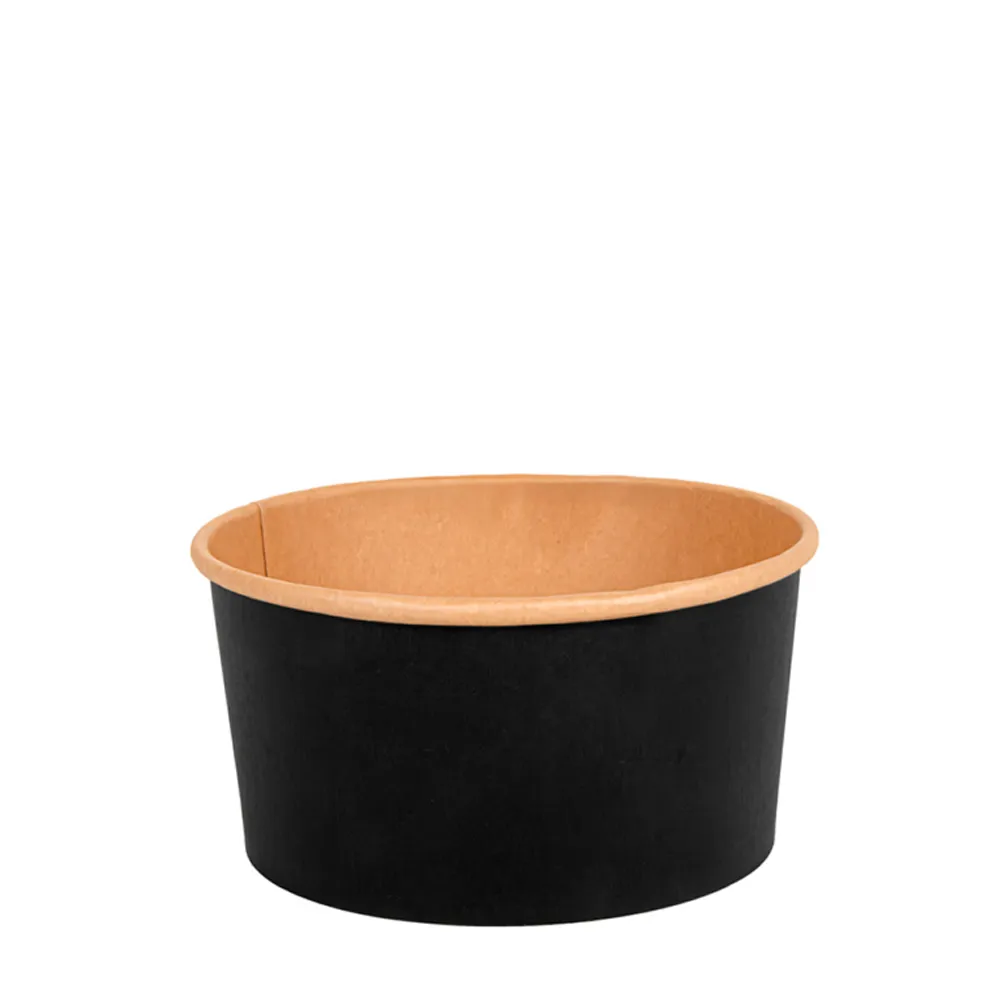 A saladeira em kraft preto 1L é a solução ideal para negócios que procuram aliar funcionalidade, resistência e apresentação premium no serviço de take away e delivery. Fabricada em papel cartão de alta qualidade (300 + 18 PE g/m²), esta embalagem garante excelente desempenho no transporte de alimentos, evitando fugas e mantendo a integridade dos pratos. O seu design moderno em preto, combinado com o interior kraft natural, transmite uma imagem sofisticada e sustentável, valorizando qualquer refeição.