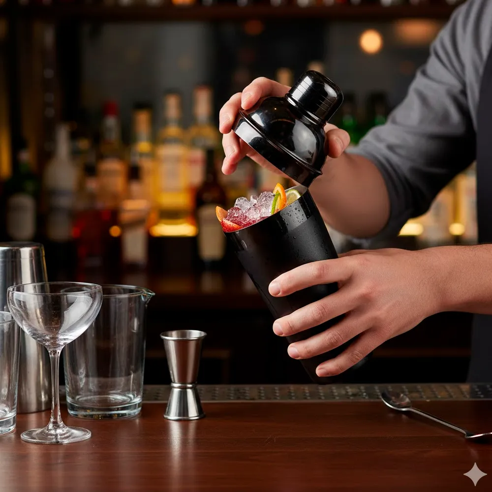 Este shaker profissional em inox destaca-se pelo acabamento preto sofisticado, que confere um toque moderno ao balcão do bar. O material em aço inoxidável oferece elevada resistência à corrosão, aos óleos e às gorduras, garantindo segurança no contacto alimentar.