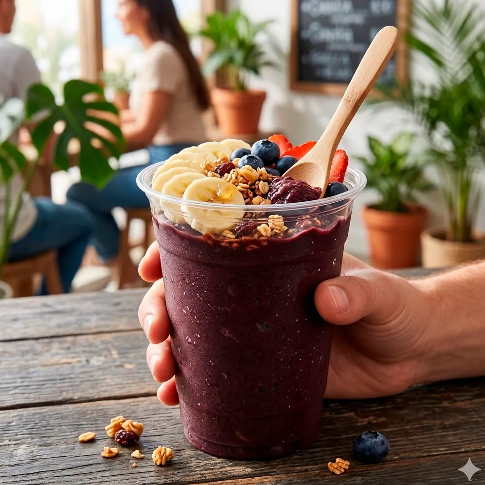 Fabricado em PET (polietileno tereftalato), este copo é leve, altamente resistente a quebras e tem excelente transparência, permitindo exibir os produtos com mais destaque. Além disso, o PET é reciclável, contribuindo para práticas mais sustentáveis no setor alimentar.