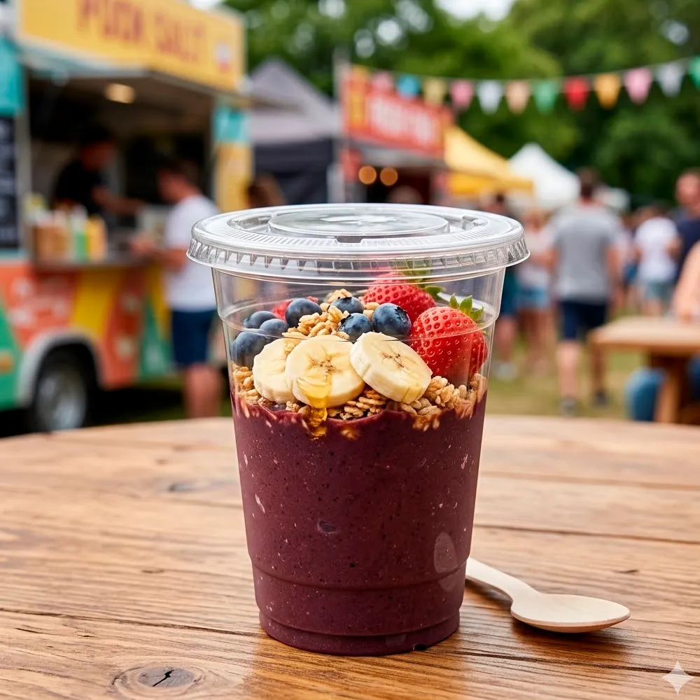A Taça PET de 47,5cl (475ml/14OZ) com tampa rasa sem furo destaca-se pelo acabamento cristalino que valoriza as cores e texturas de bebidas e sobremesas. Graças a esta transparência, smoothies, açaís, iogurtes com granola, saladas de fruta e sobremesas cremosas tornam-se mais apetitosos, reforçando a experiência visual do cliente. Além disso, o design moderno transmite sofisticação e profissionalismo em qualquer serviço alimentar.