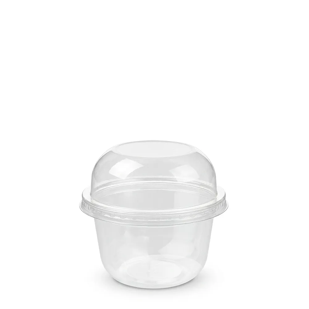Perfeita para pastelarias, cafés, restaurantes e serviços de take-away, esta taça facilita o transporte e mantém a frescura das sobremesas por mais tempo. O seu design elegante valoriza a apresentação dos produtos, tornando-a ideal para eventos, catering e venda ao público.