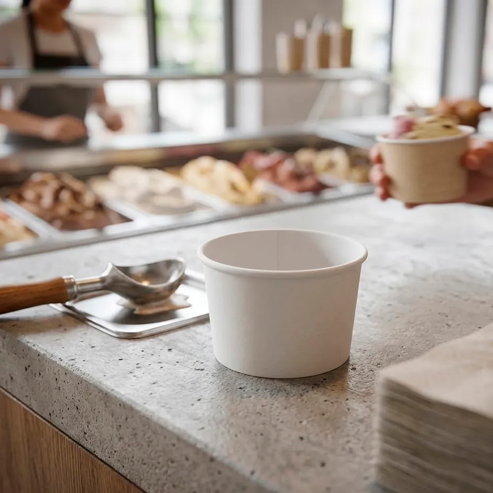 A taça ecológica para gelado é uma opção prática para negócios que procuram soluções descartáveis mais responsáveis e funcionais. O cartão utilizado permite reduzir o uso de plásticos rígidos, mantendo ao mesmo tempo a resistência necessária para o serviço de alimentos.