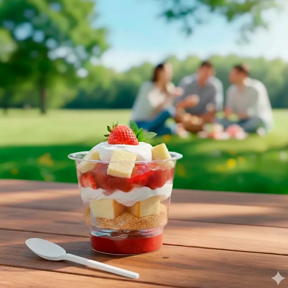 A transparência valoriza camadas, texturas e cores; como resultado, as sobremesas e os toppings parecem mais apetecíveis, tanto na vitrina como nas fotografias de menu. Além disso, o PP não transfere cheiros nem sabores, preservando o perfil sensorial do alimento até ao momento do consumo. Consequentemente, a satisfação aumenta e a perceção de qualidade sobe.